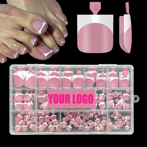 120Pcs boxtoe Nail Mẹo ngắn pháp tip móng chân Báo Chí trên Nude hồng mềm Gel Toe Nail Mẹo ngâm tắt Báo Chí trên móng chân